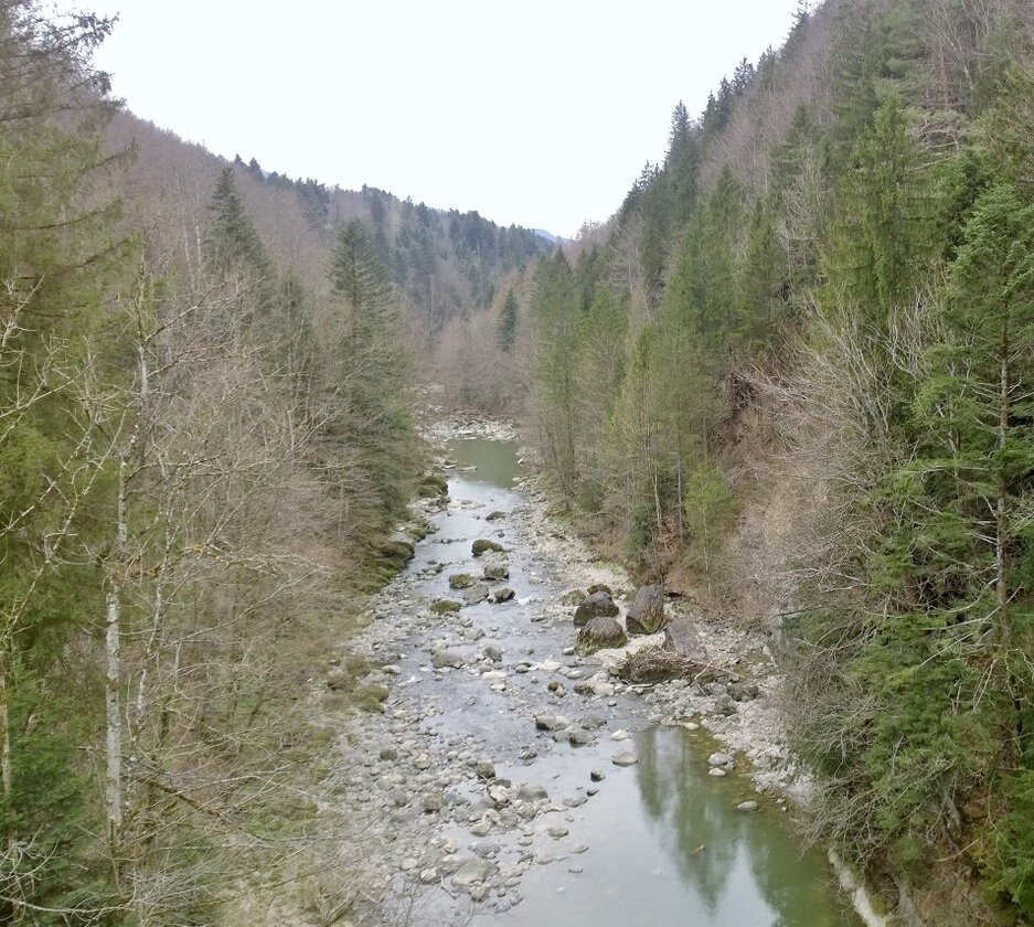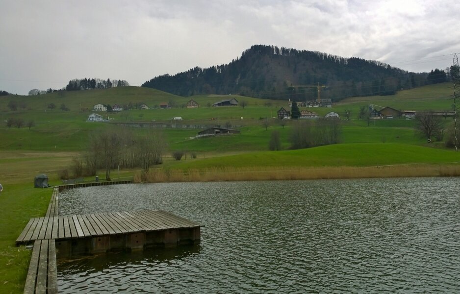 Nach dem Mittagessen wandern wir hinunter zur Sihl und von dort aus über Allenwinden zum Itlimoosweiher. Hier am idyllischen Seelein machen wir eine weitere Pause. Die Kinder lassen Papierschiffe schwimmen und wir Erwachsenen vertiefen uns in die Zeitung.