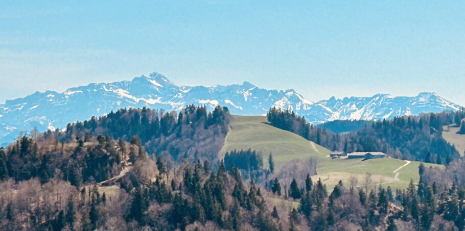 11.04.2026 Bei sommerlichen Temperaturen machen wir nun im Frühling diese recht schöne Wanderung. Sie gefällt auch heute wieder. Der Blick auf die verschneiten Berge ist schön. Die blühenden Bäume gefallen und das Zwitschern der Vögel erfreut das Herz. Wir hatten mit kaputten Knie gut vier Stunden für diese Rundwanderung. Pause haben wir heute etwas früher auf einer Wiese beim Regelsberg gemacht.