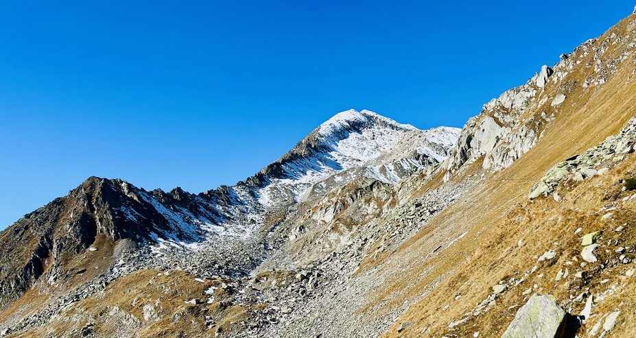 14.10.2025 Eine wunderschöne Wanderung! Warum haben wir die sechs Jahre nicht mehr gemacht? Zu zweit starten wir heute in Rohr anfangs Unteralptal. Das myBuxi bringt uns dorthin. So sparen wir uns den weniger schönen Anfang durch Andermatt. Das Tal ist leer. Die Sonne lacht. Die Spitzen der Berge sind weiss. Fast schon kitschig alles. Oben auf dem Lorenpass ist es wunderbar. Wir steigen nun ab zum Lai Urlaun und machen Pause auf einem warmen Stein. Danach geht es der Strasse entlang (gesperrter Wanderweg wegen Steinschlag) zum Punkt 1831 an einer Kurve der Oberalpstrasse. Von dort ist ein Weg hinauf zum Oberalppass markiert. Der Abstieg auf der Strasse war ganz OK - der Aufstieg mehr oder weniger der Strasse entlang weniger - aber besser als das letzte Mal als es so viele Leute hatte.